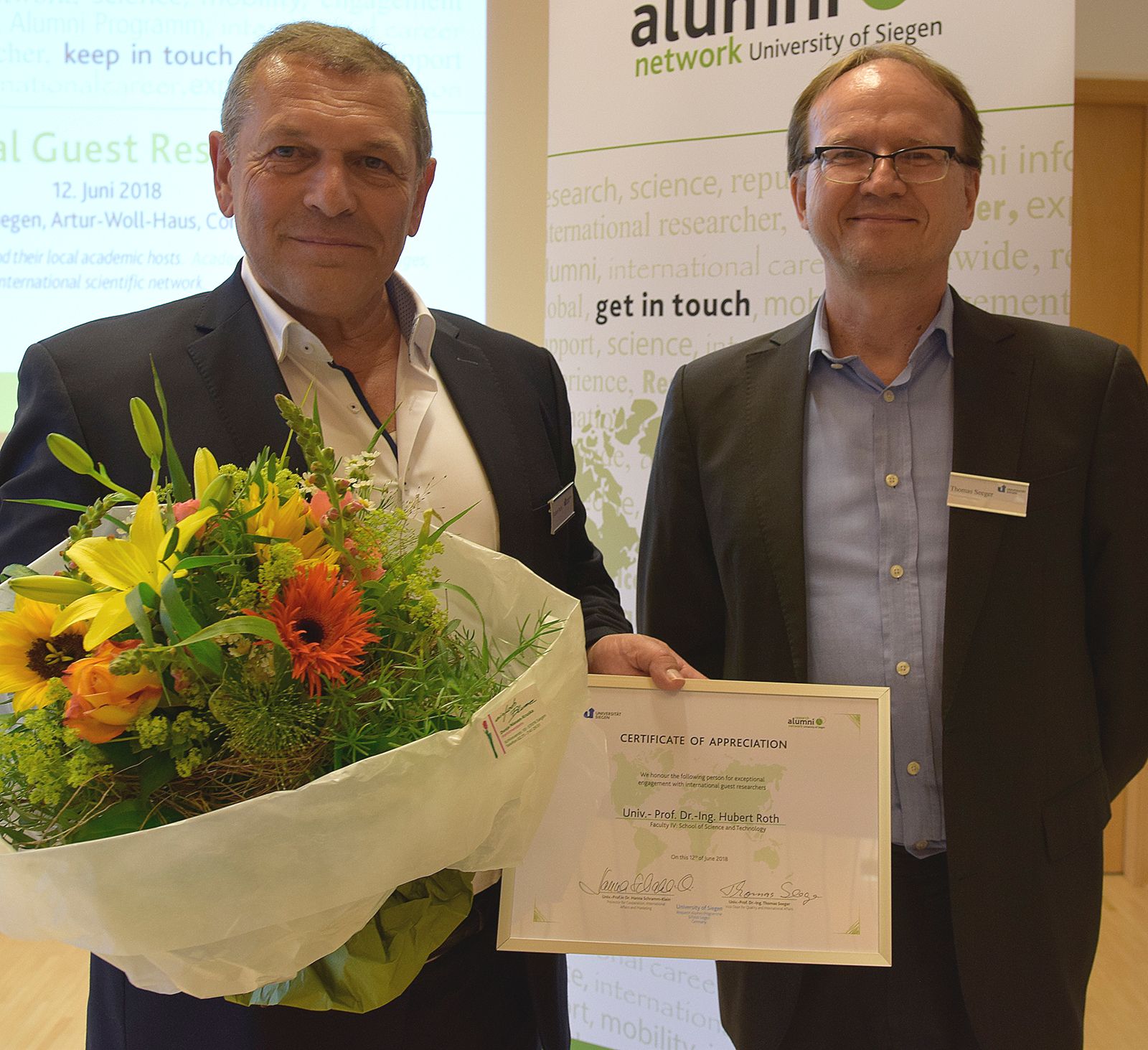Eine solche besondere Würdigung erhielten je eine bzw. ein Wissenschaftler/in pro Fakultät: Raphaela Averkorn (Professorin für Mittlere und Neuere Geschichte), Johannes Schädler (Professor für Sozialpädagogik und Sozialarbeit), Erwin Pesch (Professor für betriebliche Anwendungs- und Entscheidungsunterstützungssysteme) und Professor Hubert Roth (Lehrstuhl für Regelungs- und Steuerungstechnik).