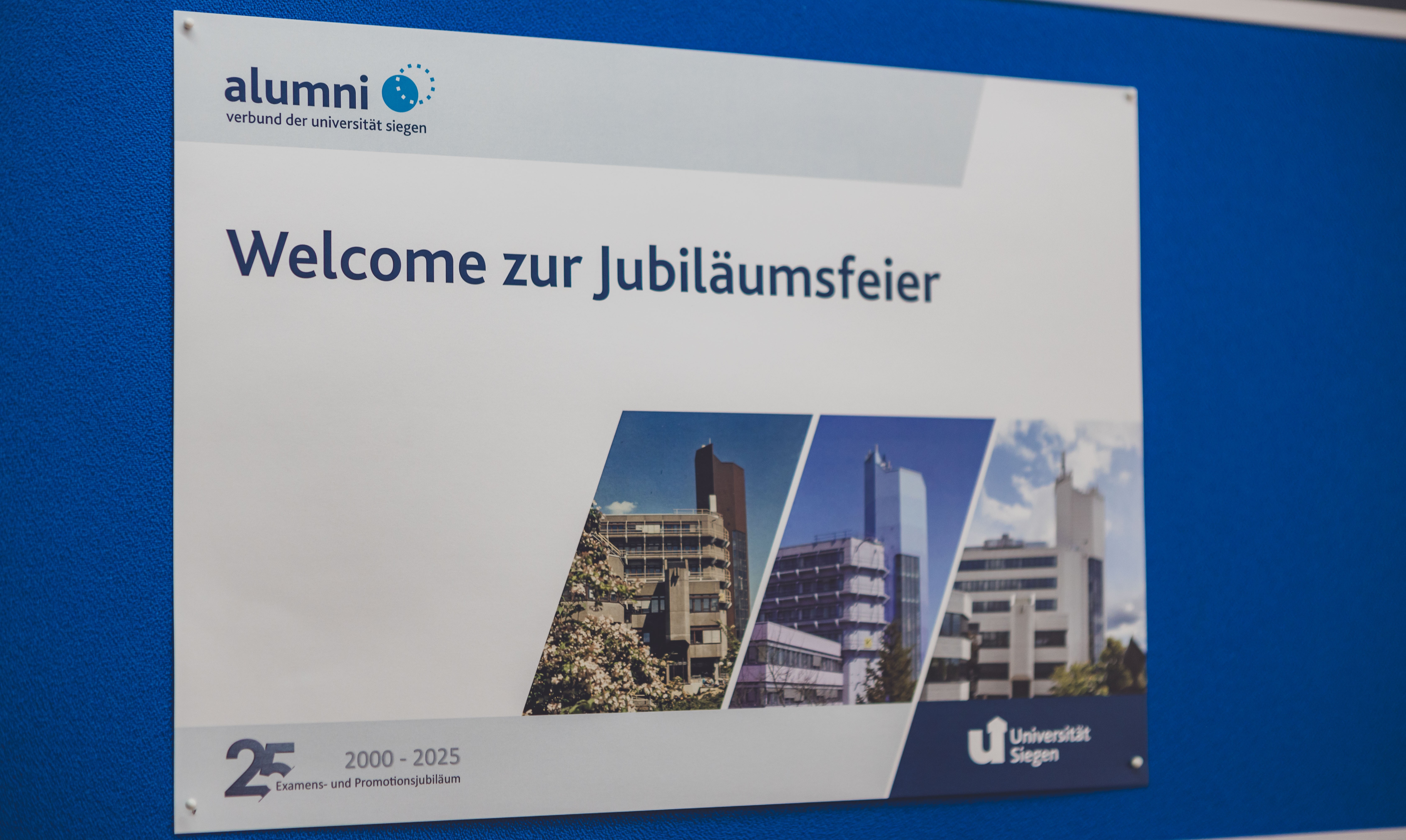 Erstmalig hat die Universität Siegen die Alumni, die im Jahr 2000 ihr Examen absolviert oder ihre Promotion abgeschlossen haben, zu einer „Silberjubiläumsfeier“ einladen. Über 100 Absolventinnen und Absolventen kamen zu dem Empfang im Audimax am Campus Adolf-Reichwein-Straße und nahmen von Rektorin Prof. Dr. Stefanie Reese ihre Jubiläumsurkunden entgegen.