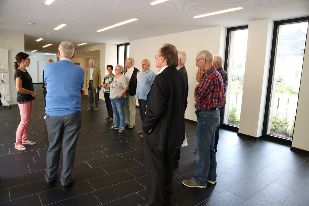 Die Absolventen studierten damals noch an der 1962 gegründeten Höheren Wirtschaftsfachschule (HWF), die erst den Grundstein für die heutige Fakultät Wirtschaftswissenschaften, Wirtschaftsinformatik und Wirtschaftsrecht der Universität Siegen legte. Dass sich seit ihrem letzten Besuch einiges an der Universität getan hat, konnten die Alumni bereits durch den Treffpunkt am Campus Unteres Schloss erahnen. Im „Alten Gerichtssaal“ begrüßte sie Univ.-Prof. Dr. Andreas Dutzi, Prodekan für Struktur und Regionales, und stellte den dreizehn Alumni in seinem Vortrag die Entwicklung, Forschung und Lehre der Wirtschaftswissenschaften sowie die Zukunftspläne der Universität Siegen vor. Zum Forschungsschwerpunkt der Fakultät gehört die Mittelstandsforschung. Angesichts dieses Schwerpunkts sagte der Prodekan: „Ich wage die Aussage, dass wir unter den Top 3 in Deutschland sind“. Außerdem betonte er die guten Berufseinstiegchancen in der Region Südwestfalen. Aufgrund der Landflucht gäbe es in diesem Bereich jedoch noch viel zu tun.