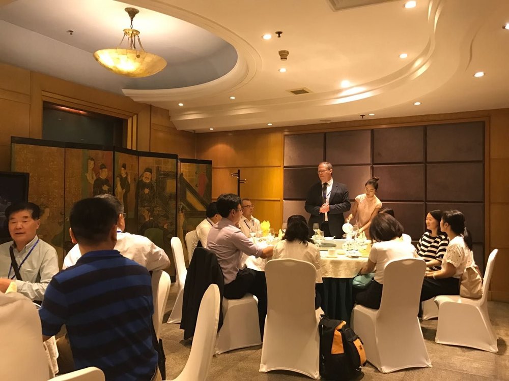 Nach anregenden Diskussionen, in denen der Austausch der Alumni über die Entwicklungen mit dem Kanzler und der ebenfalls mit angereisten Leiterin der Abteilung Student Affairs des International Office, Christine Müller, weiter vertieft wurden, lud die Universität Siegen alle Teilnehmerinnen und Teilnehmer zu einem gemeinsamen Abendessen ein. In geselliger Runde wurden nicht nur gemeinsame Erlebnisse in Siegen und Neuigkeiten über Bekannte aus Siegener Zeiten ausgetauscht, sondern auch weitere Pläne über zukünftige gemeinsame Unternehmungen in China geschmiedet.