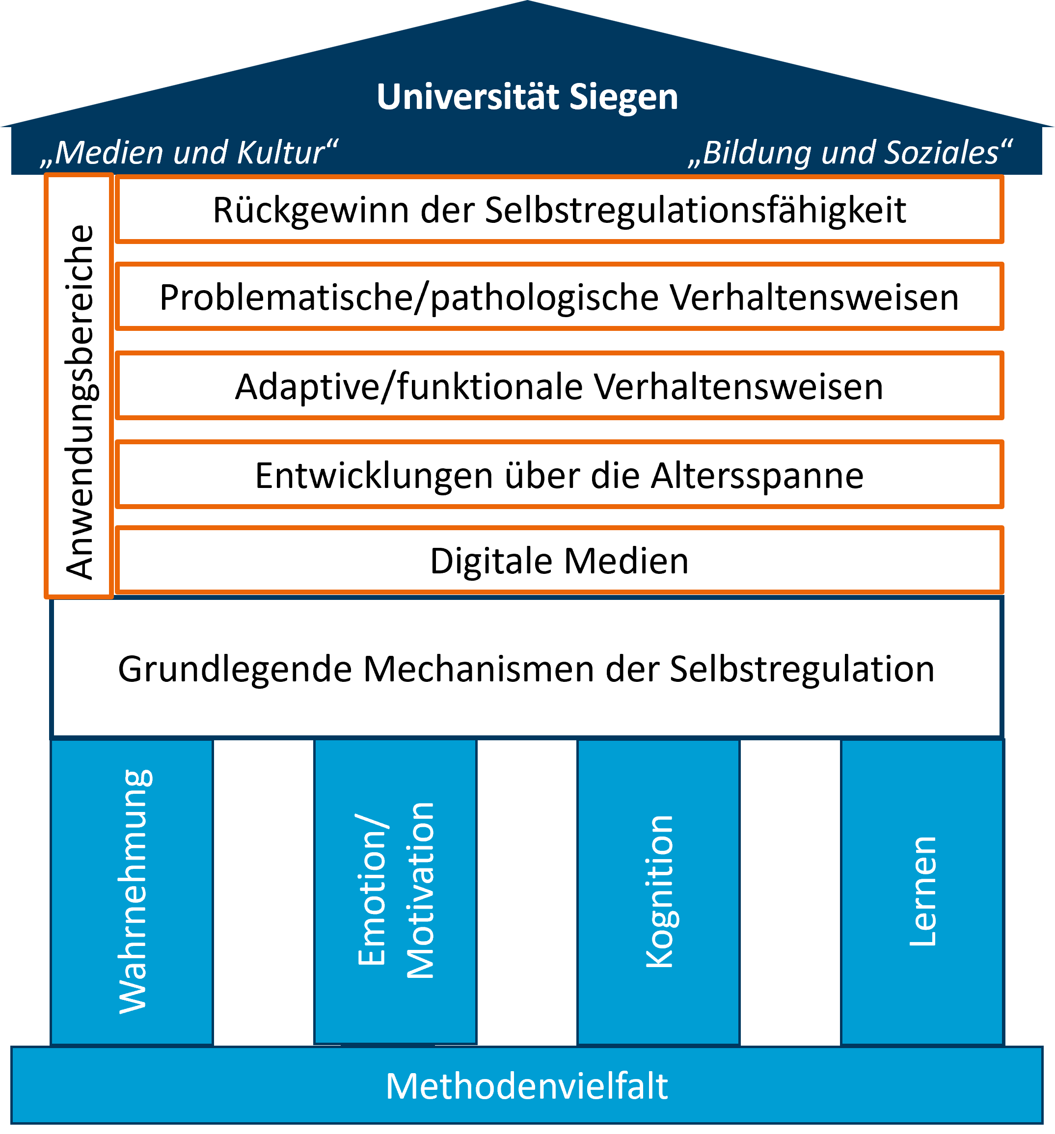 Anknüpfend an den Profilbereich „Medien und Kultur“ der Universität Siegen sowie der Fakultät II werden diese grundlegenden Mechanismen insbesondere im Anwendungskontext der Nutzung digitaler Medien über die Lebensspanne hinweg erforscht. Für die Untersuchung der Mechanismen reduzierter Selbstkontrolle werden Verhaltenssüchte (insb. Internetnutzungsstörungen) als Modell für Verhaltensweisen mit verminderter Kontrolle herangezogen, da sie ohne den direkten Einfluss von Substanzen zu einer eingeschränkten Kontrolle führen. Solche Verhaltensmuster treten vermehrt bei Kindern und Jugendlichen auf, besitzen aber auch im Erwachsenenalter hohe Relevanz. Diese Themen haben sowohl aus einer grundlagenorientierten Perspektive als auch hinsichtlich möglicher Anwendungsgebiete eine hohe Relevanz.