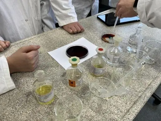 Material: Kristallisierschale, Gesteinsprobe, 25%ige Essigessenz