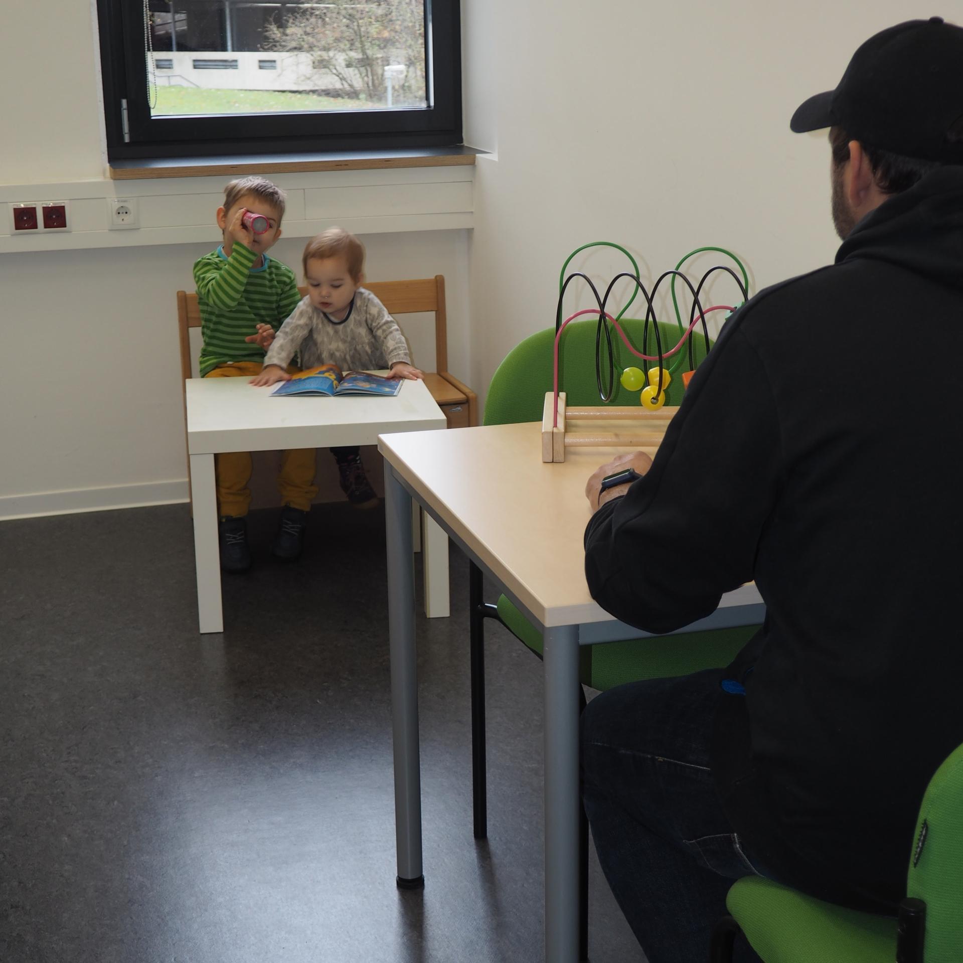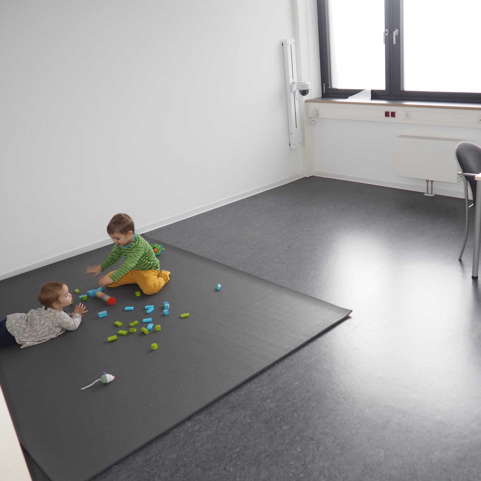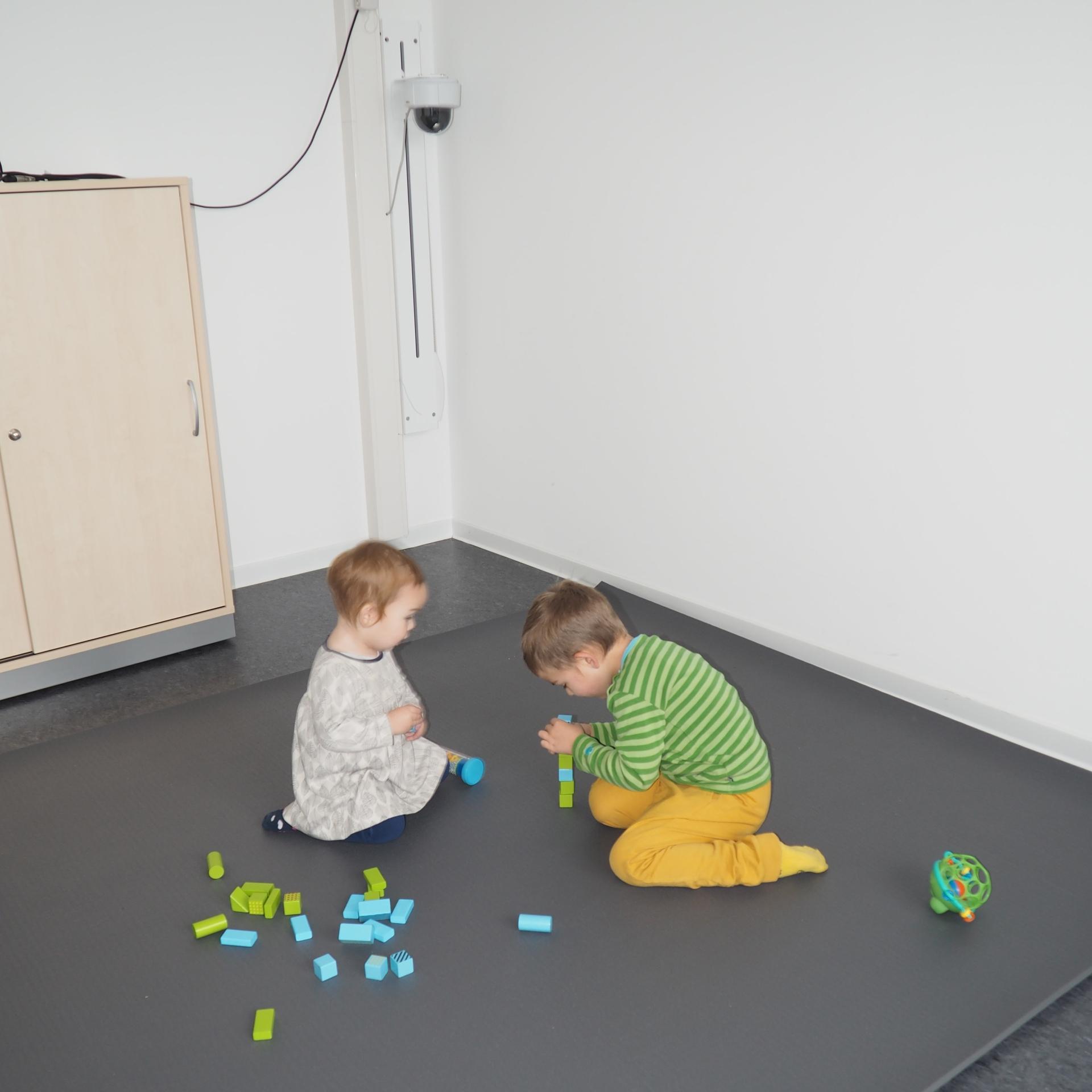 Der Beobachtungsraum ist mit fest verbauten und kindersicheren 360°-Kameras ausgestattet, die das Verhalten der Kinder fast unbemerkt aufzeichnen. Dieser Raum wurde bewusst mit wenigen Farben und klaren Formen gestaltet, damit unsere kleinen Gäste sich ganz auf die Spielzeuge und die anderen Kinder einlassen können. Der angrenzende Nebenraum bietet Möglichkeiten zum Stillen, Füttern oder Wickeln.