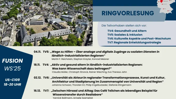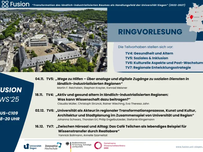 The University of Siegen offers lecture series on the topic "Transformation of rural-industrialized areas as a field of action for the University of Siegen". The target group is all interested parties!