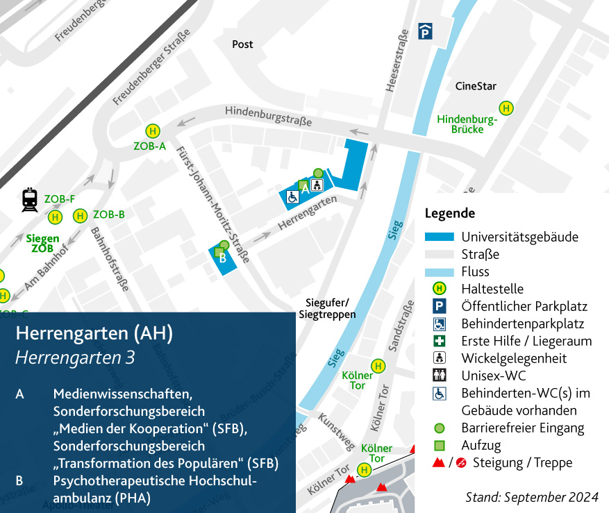 - UX1 -> terminus Weidenau (Siegen), Uni (AR) Adolf-Reichwein-Straße (travel time: 17 minutes)