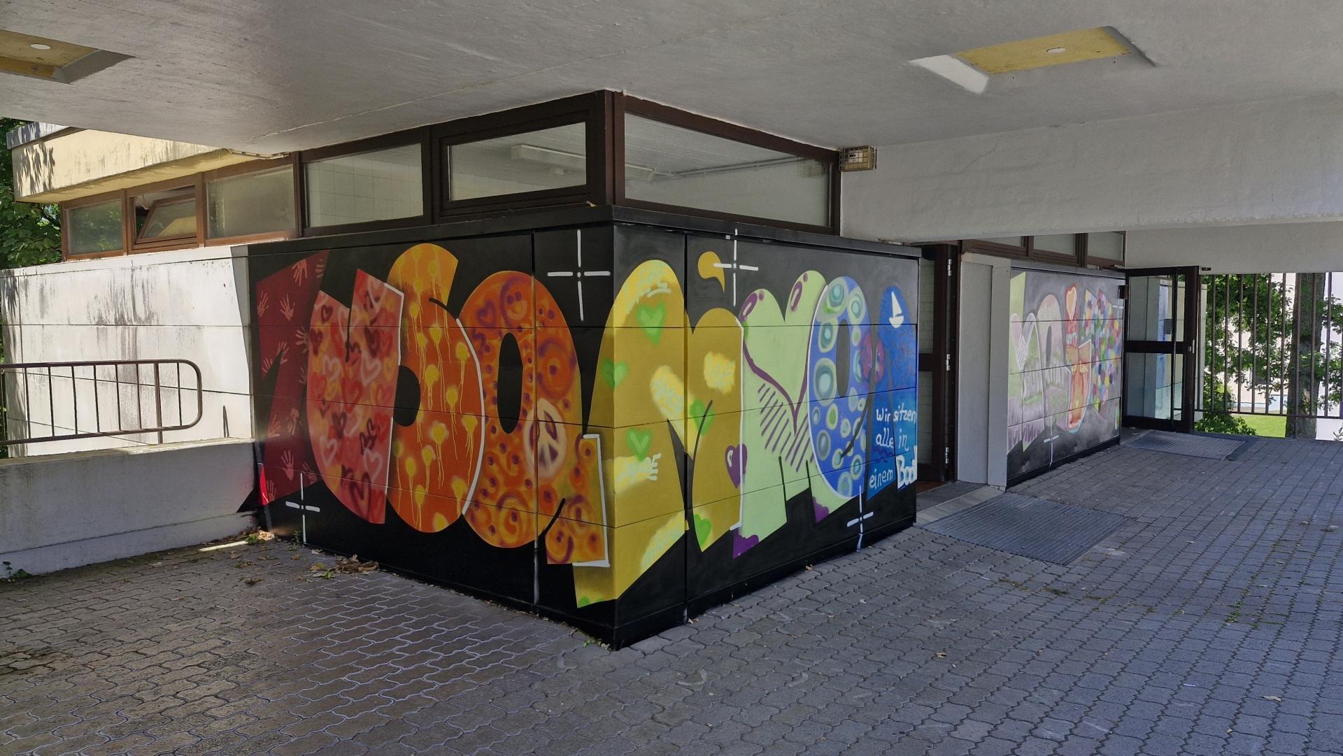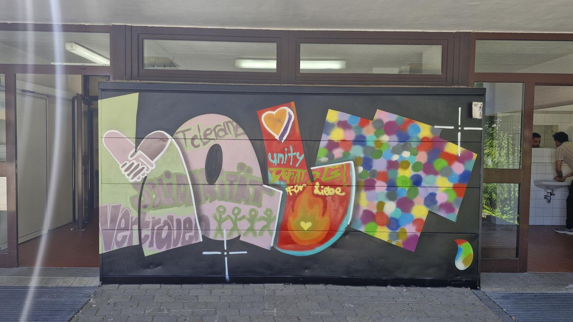 Under the guidance of Siegen graffiti artist Julian Irlich, the participants transformed the façade of the AR-HB building into a colorful canvas with their spray cans.