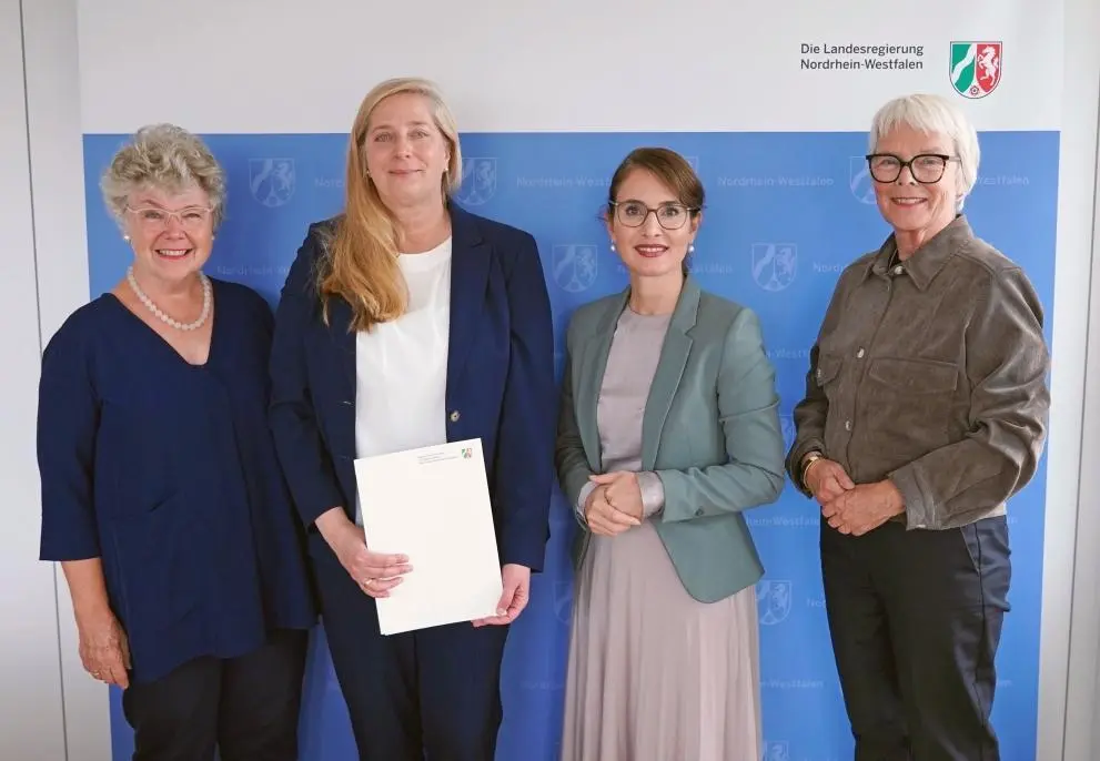 Presentation of the certificate of appointment at the Ministry of Culture and Science in Düsseldorf (from left): Prof. Dr. Hildegard Schröteler-von Brandt (Deputy Chairwoman of the University Council), Iris Litty, State Secretary Gonca Türkeli-Dehnert and Prof. Dr. Jutta Wiesemann (Spokeswoman of the University Council).