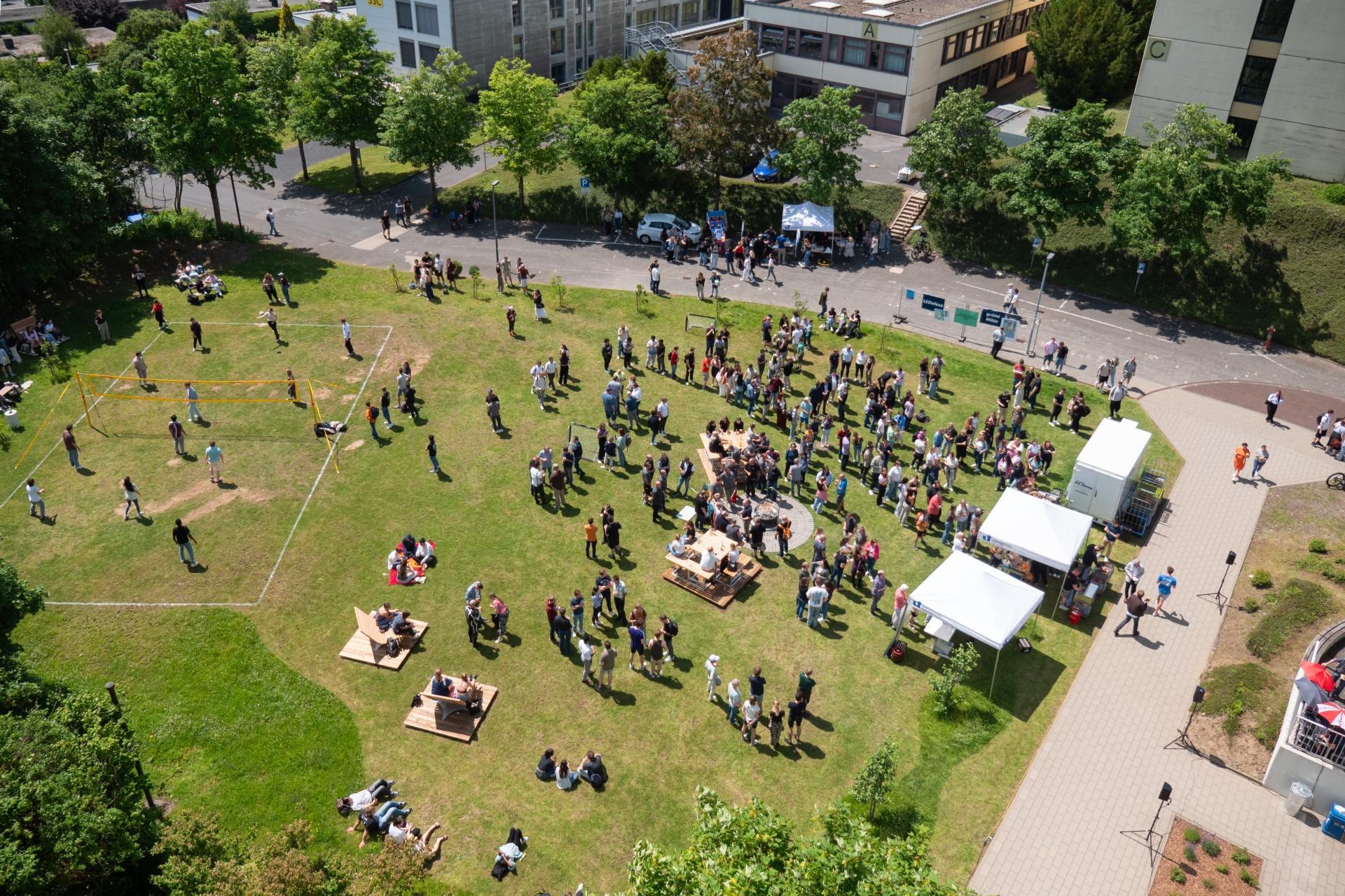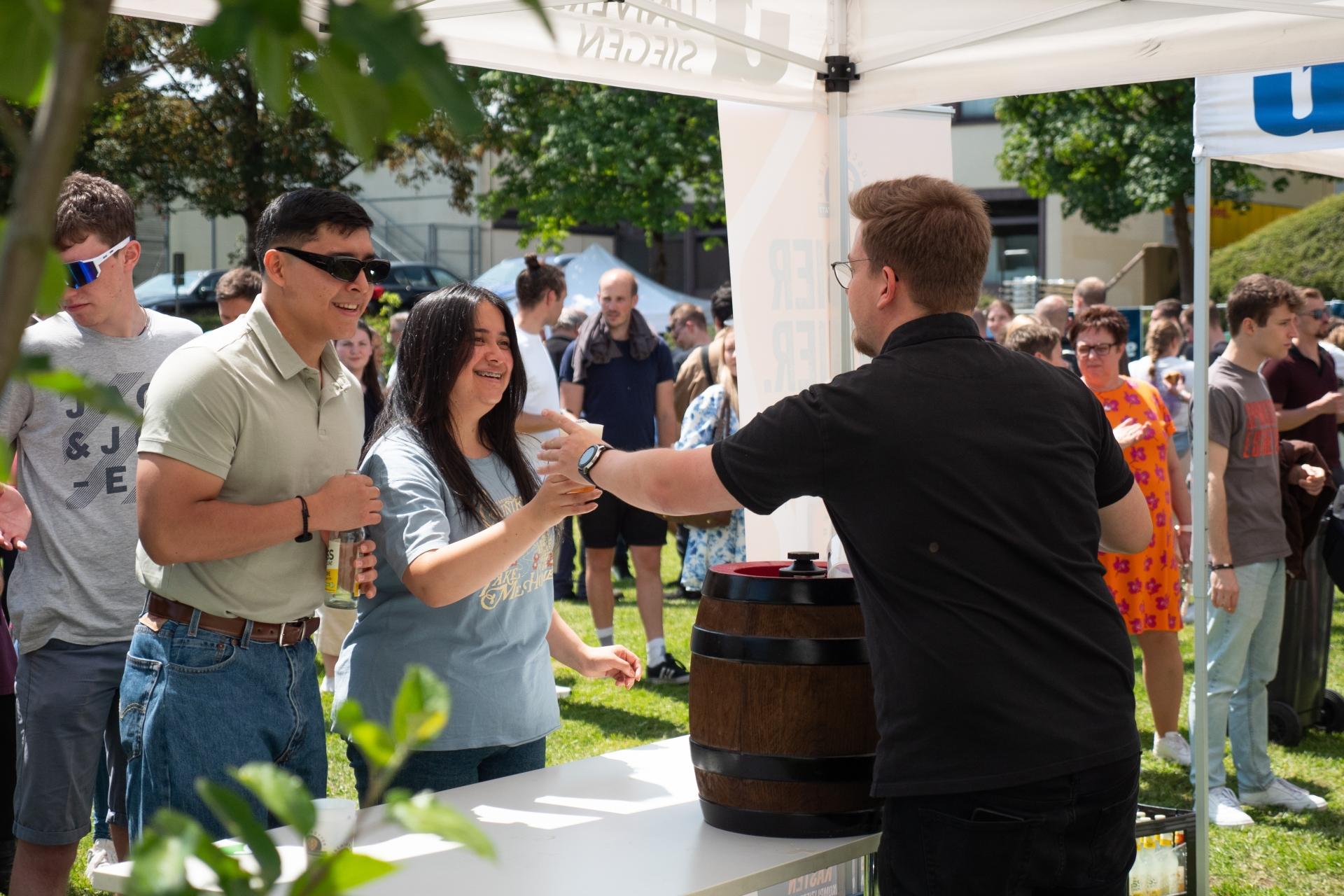 The project was initiated by Vice-Rector Prof. Dr. Petra Vogel. It was implemented as a team effort involving numerous university institutions. The Rectorate invited guests to the party and, with the support of the Studierendenwerk Siegen, provided refreshments: grilled sausages and cool drinks were available to all guests free of charge.