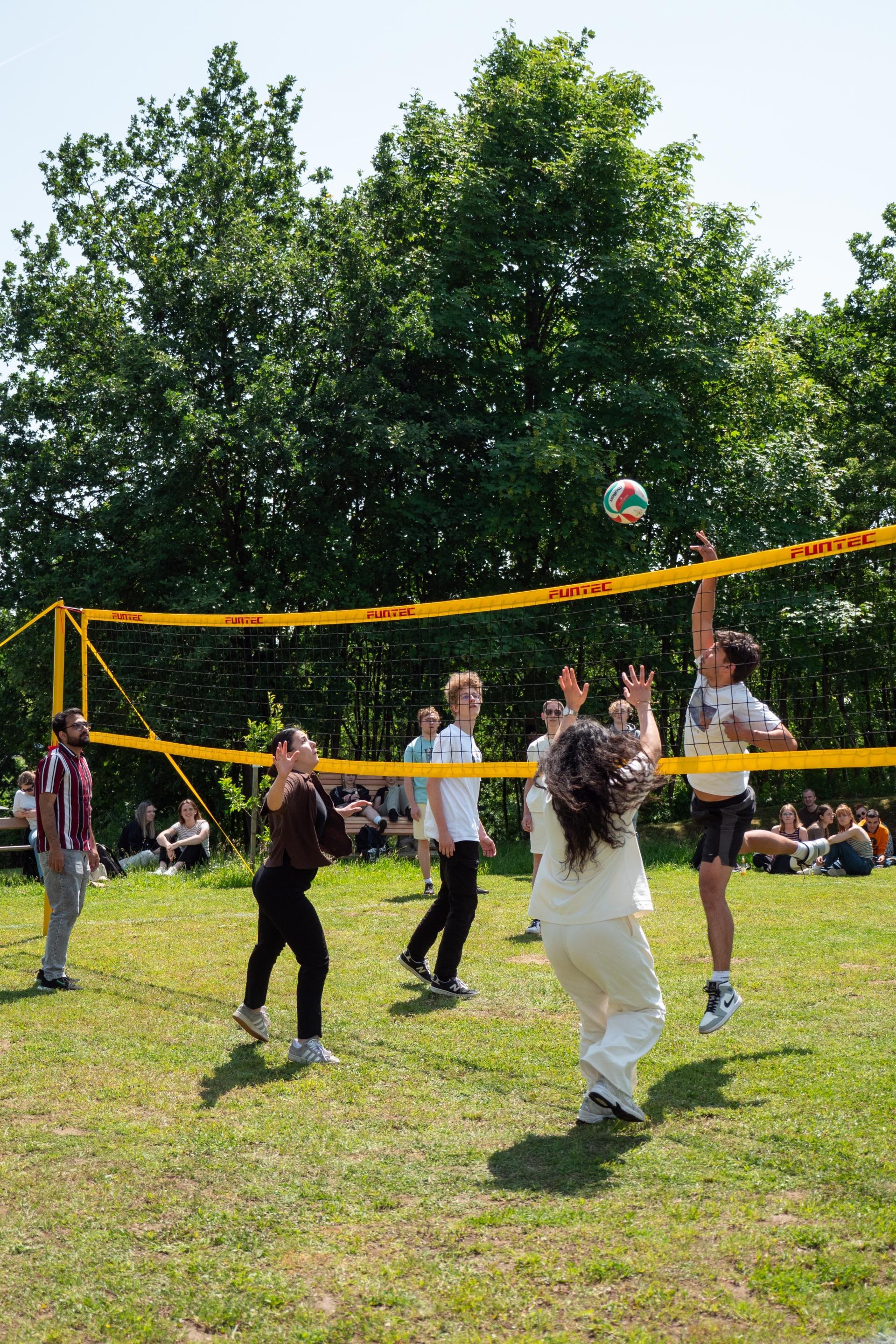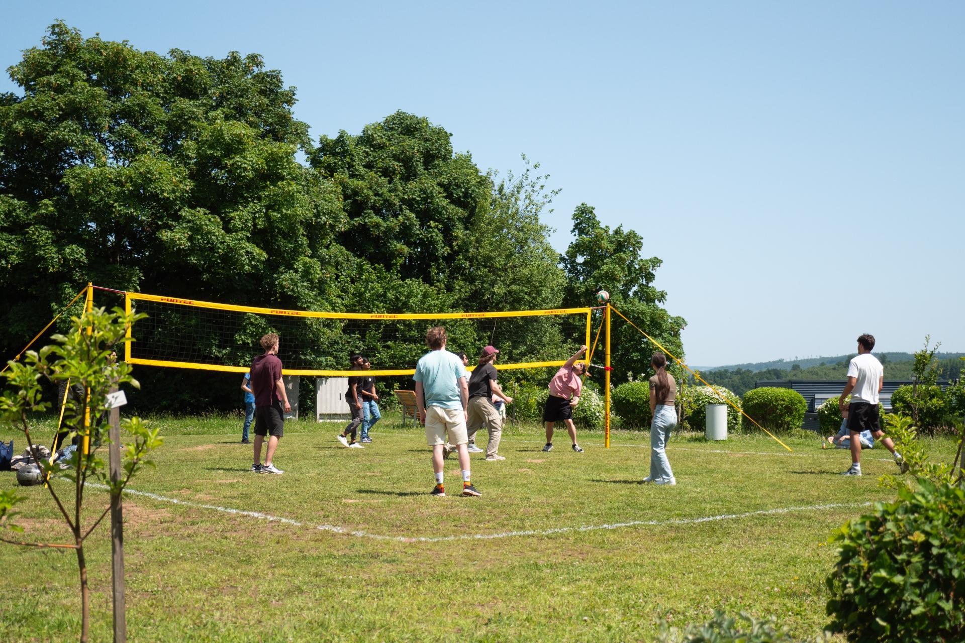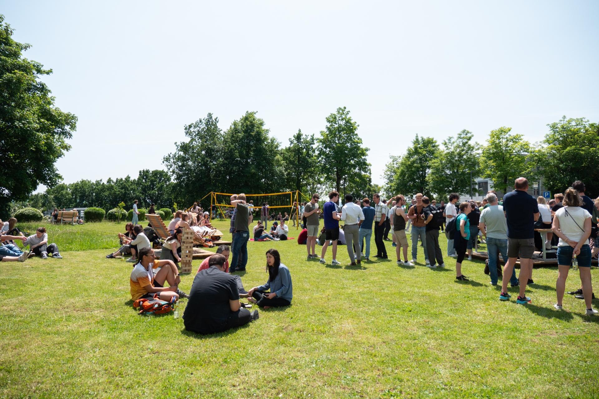 There was plenty of action on the new playing fields, where many of the visitors played volleyball, soccer and giant Jenga or tested out the new barbecue. University sports, the new student health management program "healthup" and the university library presented their services. Sports and play equipment could be borrowed on site and tried out directly (see info box).