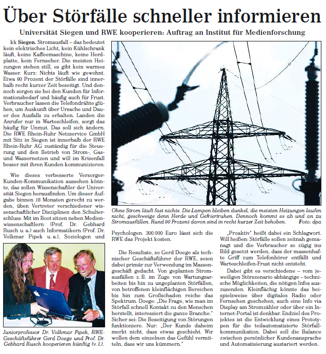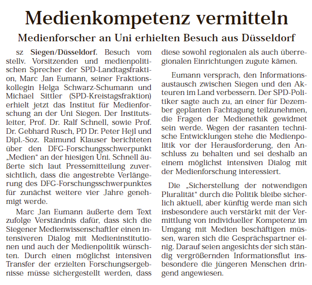 - 7.April 2008: "Plus an Sicherheit gefragt. Institut für Medienforschung lud zur Jahrestagung" (Siegener Zeitung)