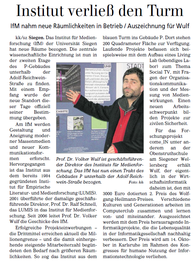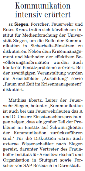 - 10. April 2011: "Sicherheit in Theorie und Praxis: Siegener Medien-Forscher boten Workshop" (Siegener Zeitung)