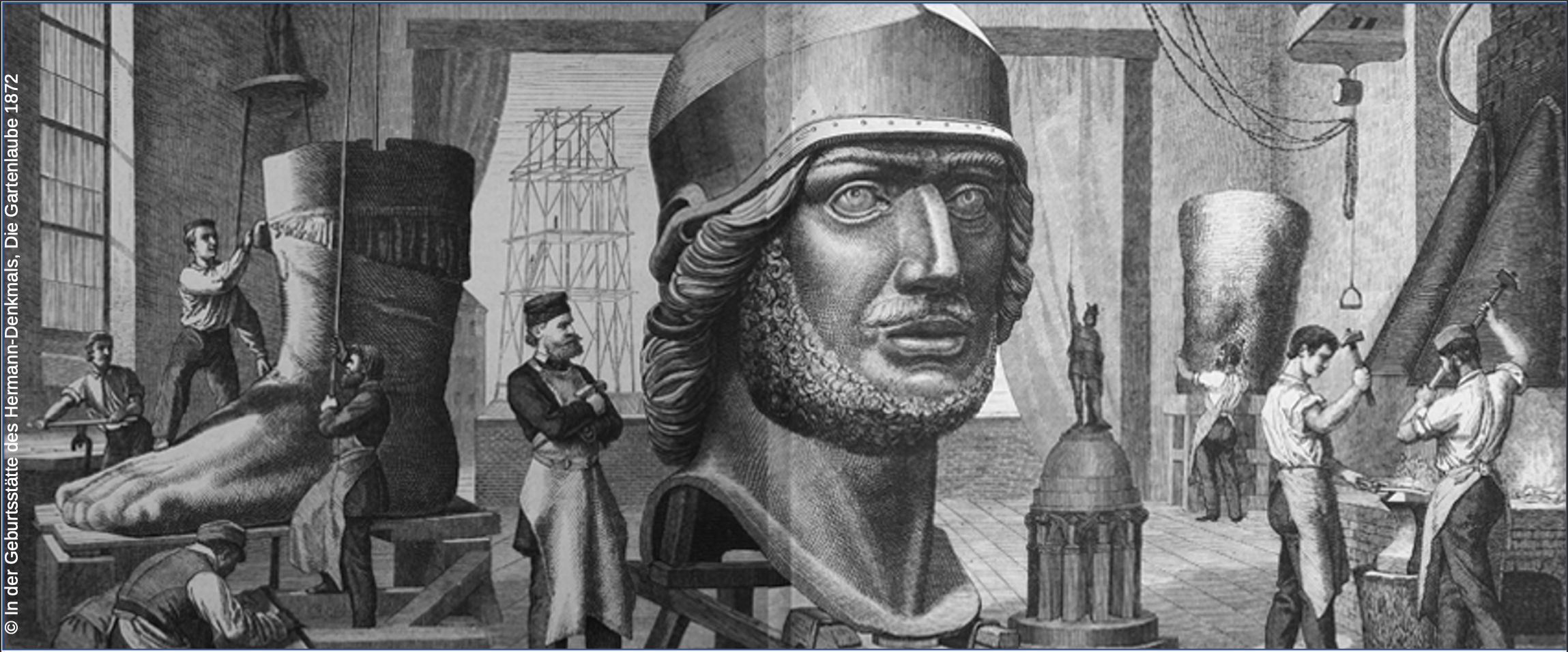 Stich mit Werkstattszene: In der Geburtsstätte des Hermann-Denkmals, Die Gartenlaube 1872