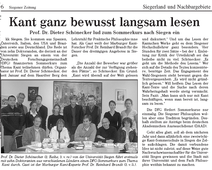 Das Siegener Zentrum für Kommentarische Interpretationen zu Kant (ZetKIK) führte vom 11.-13. Oktober 2006 im Rahmen eines DFG-Sommerkurses den