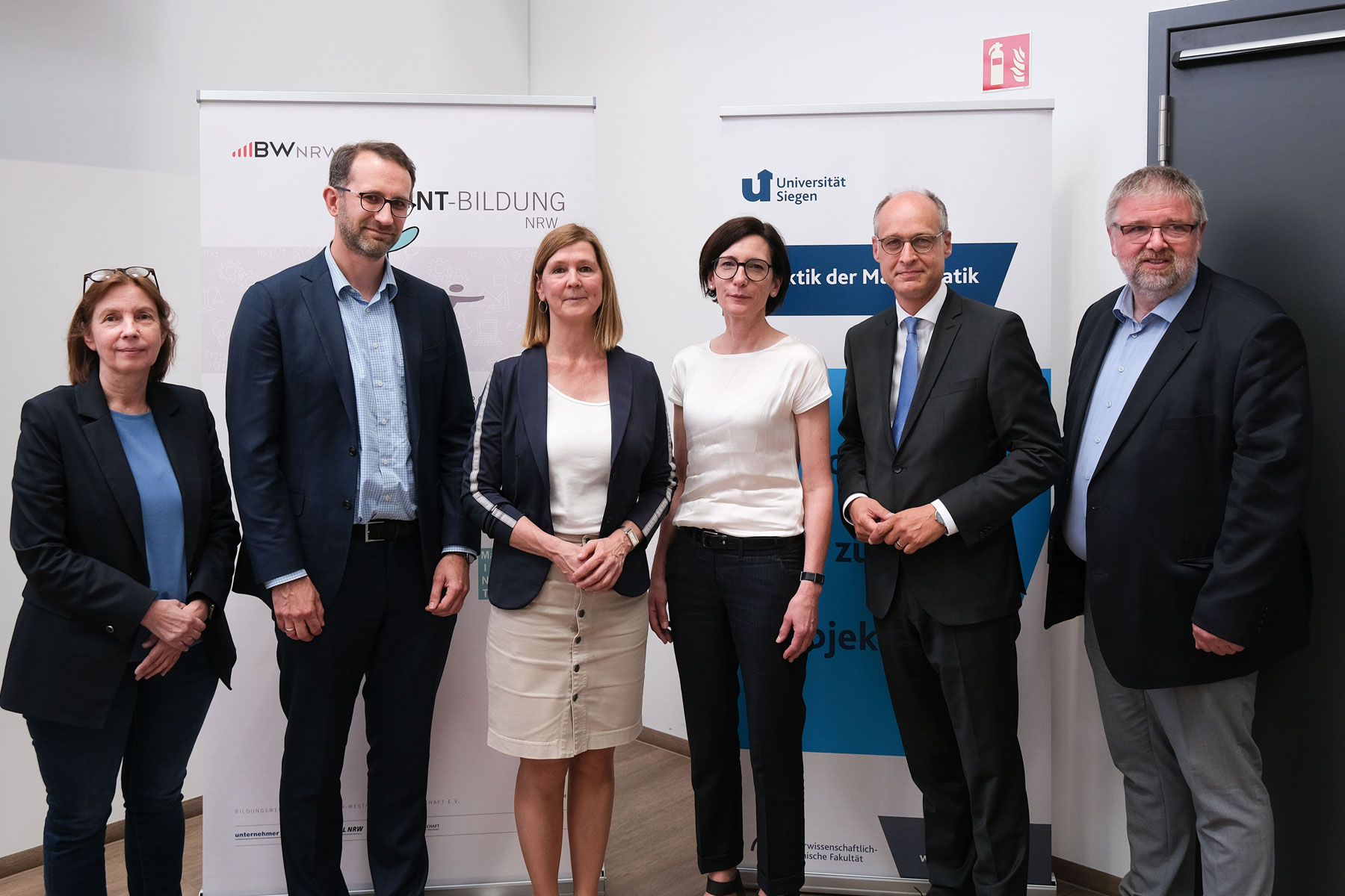 Im Rahmen einer Feierstunde auf dem Campus Unteres Schloss der Universität Siegen gratulierte Staatssekretär Dr. Urban Mauer aus dem Ministerium für Schule und Bildung des Landes Nordrhein-Westfalen, gemeinsam mit dem stellvertretenden Vorsitzenden des Bildungswerks der Nordrhein-Westfälischen Wirtschaft, Thomas Koch, den neuen und rezertifizierten Schulen im Exzellenz-Netzwerk MINT SCHULE NRW.