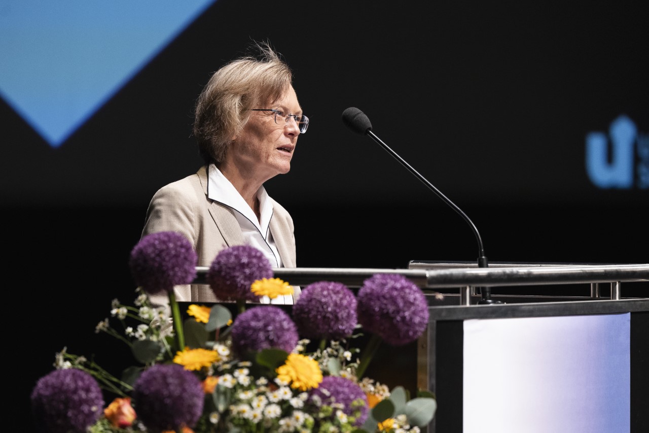 Über die vielen Abschlüsse freute sich Prof. Dr. Holger Schönherr, Dekan der Naturwissenschaftlich-Technischen Fakultät. Er lobte die Absolvent*innen und Doktores für ihre harte Arbeit und ihr Durchhaltevermögen: „Sie können nun mit Selbstvertrauen und Zuversicht in Ihre Zukunft blicken und diese aktiv gestalten. Mit Ihrem erfolgreichen Abschluss haben Sie einen großen Schritt nach vorne gemacht und Fähigkeiten, Fachkenntnisse und Kompetenzen an der Uni Siegen erworben, die nicht nur im Arbeitsleben entscheidend sein können und werden. Scheuen Sie sich nicht, davon Gebrauch zu machen, auf dieser Wissensbasis Sachverhalte kritisch zu analysieren, zu urteilen und Verantwortung zu übernehmen! Ich bin mir sicher, dass Sie unser aller Zukunft verantwortungsvoll mitgestalten und allen aktuellen Krisen zum Trotz zum Positiven verändern helfen.“