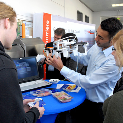 Insgesamt 48 Unternehmen stellten sich auf dem Campus Paul-Bonatz-Straße möglichen Arbeitnehmern der Zukunft vor. Mit ersten Einblicken zum Geschäftsfeld und zu konkreten Arbeitsbeispielen, mit Informationen zu Praktika, Trainee-Programmen und Möglichkeiten des direkten Job-Einstiegs oder Abschlussarbeiten. Zudem gab es Workshops zur perfekten Bewerbungsmappe und die Simulation eines Assessment Centers. Auch Connect.US, die Bündelung der Bereiche Transfer, Alumniverbund, Gründung und Career Service der Universität Siegen, stand für alle Fragen bereit.