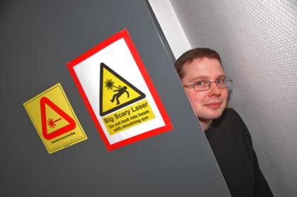 | Beschreibung: | Dr. Rainer Bornemann vor CW-Polymerlaser (in Betrieb) |